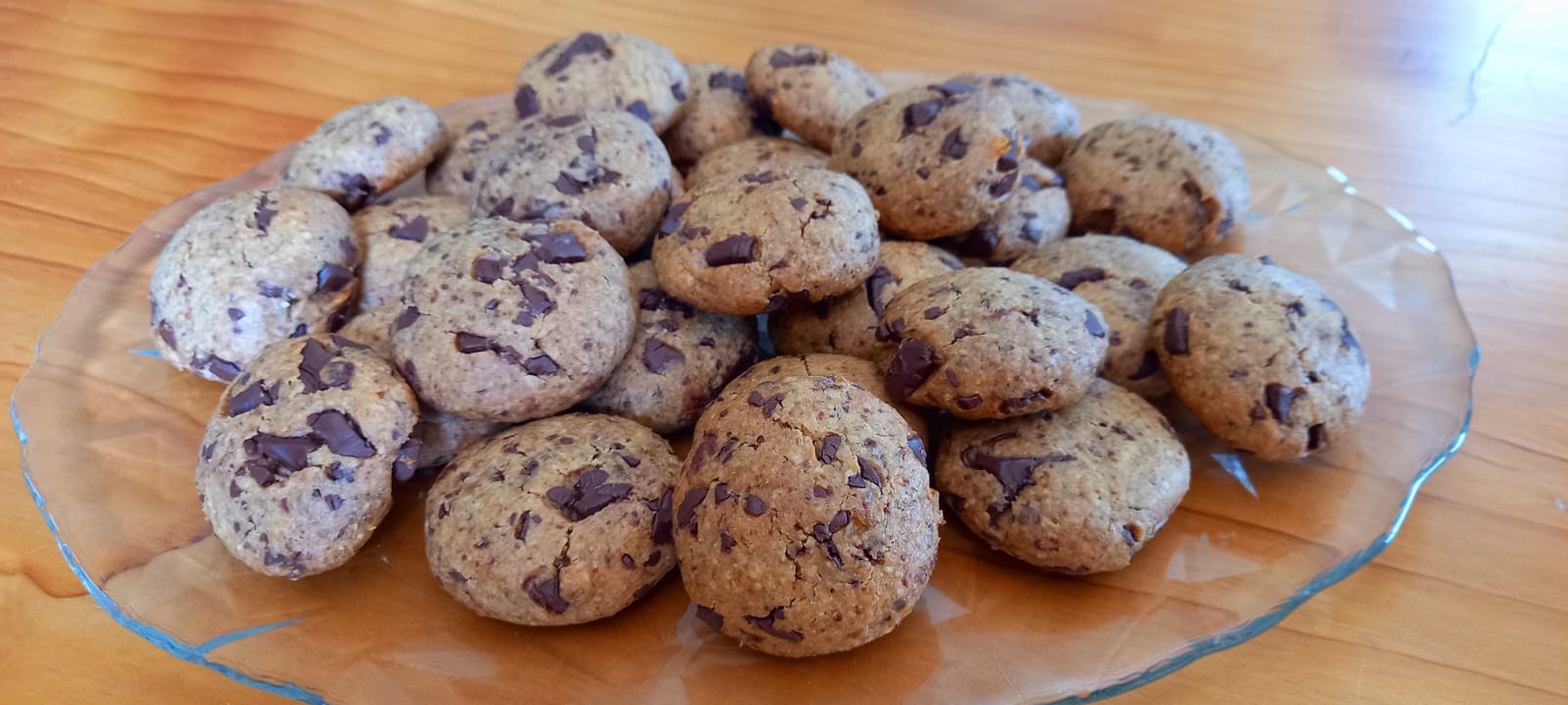 Unisci tutti gli ingredienti in una ciotola e impasta aggiungendo la bevanda quanto basta a creare un impasto morbido e malleabile. Forma i biscotti creando delle palline da appiattire e adagiare su una teglia ricoperta di carta da forno.